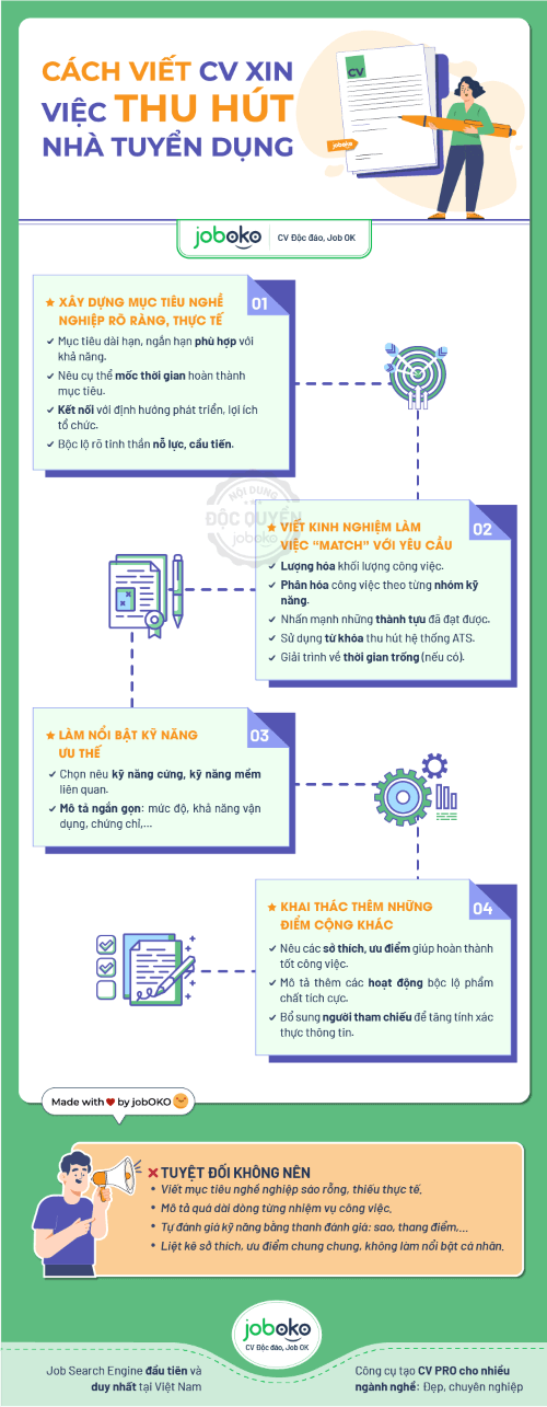 - Thể hiện mức độ phù hợp tối đa với công việc ứng tuyển